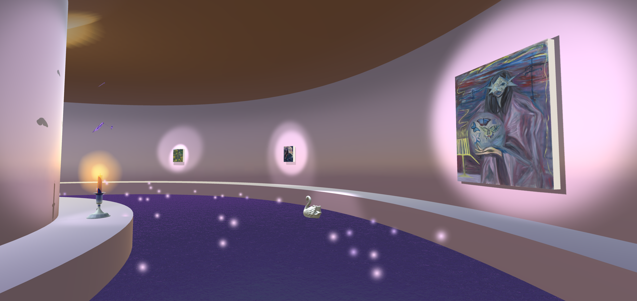 It was interesting for sure. I imagined the viewer floating through the space to view the paintings on a swan boat, a nod to both the familiar kind of background scenery at Echo Park Lake and also a throwback to the swan boat Tunnel of Love rides, originally from the 1950’s.