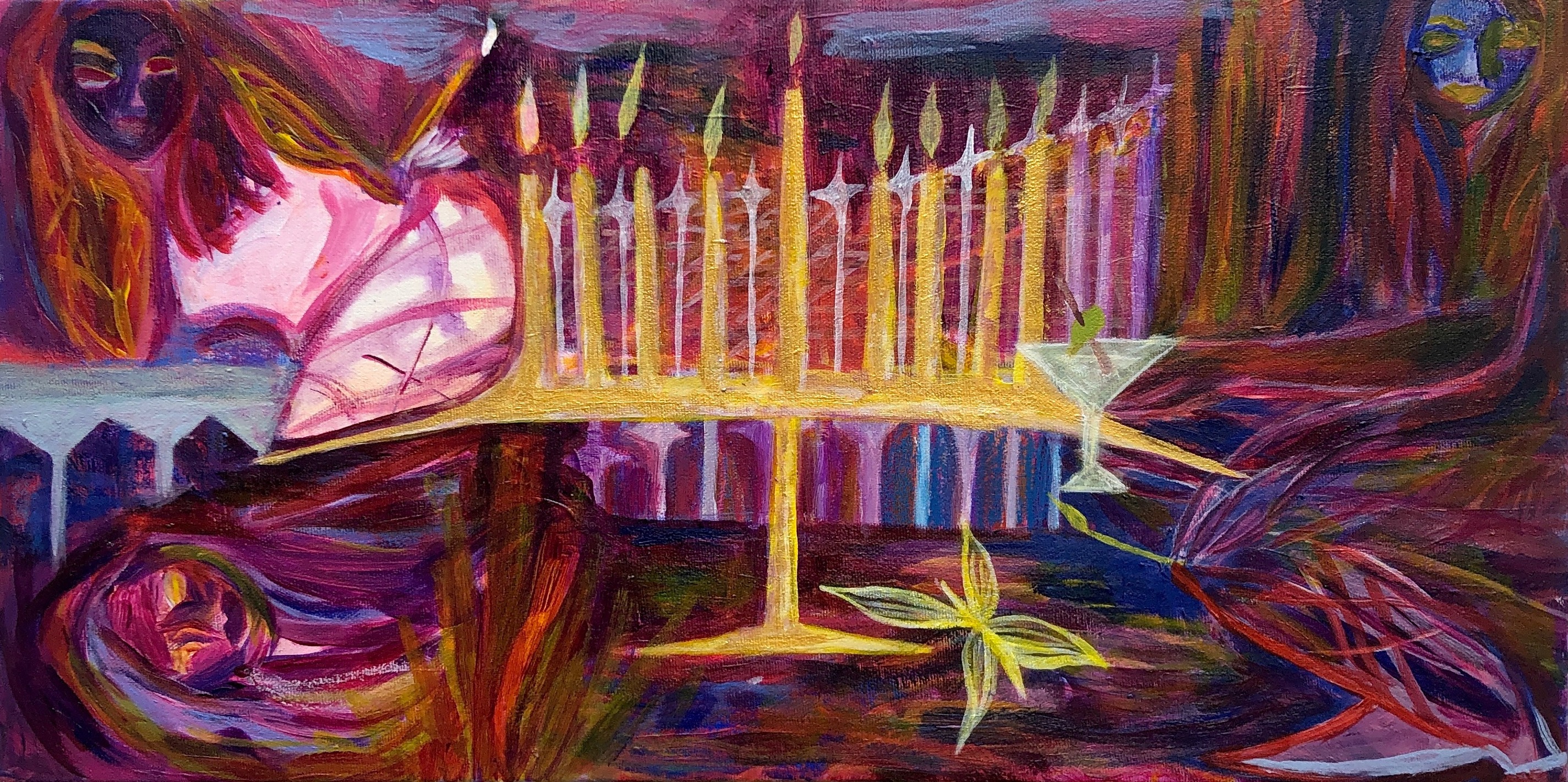 That's a cool question. During the pandemic I'd been doing lots of watercolors in my bedroom and was constantly in my house, staying up late, and feeling super isolated, so it was a natural extension to conceptualize an exhibition that reflected the experience of the world feeling like it existed somehow in the shadow of itself. Life felt completely surreal and apocalyptic.