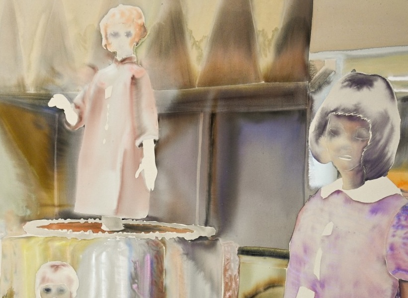 acrylic, ink, and dye on canvas, 58 x 72 inches