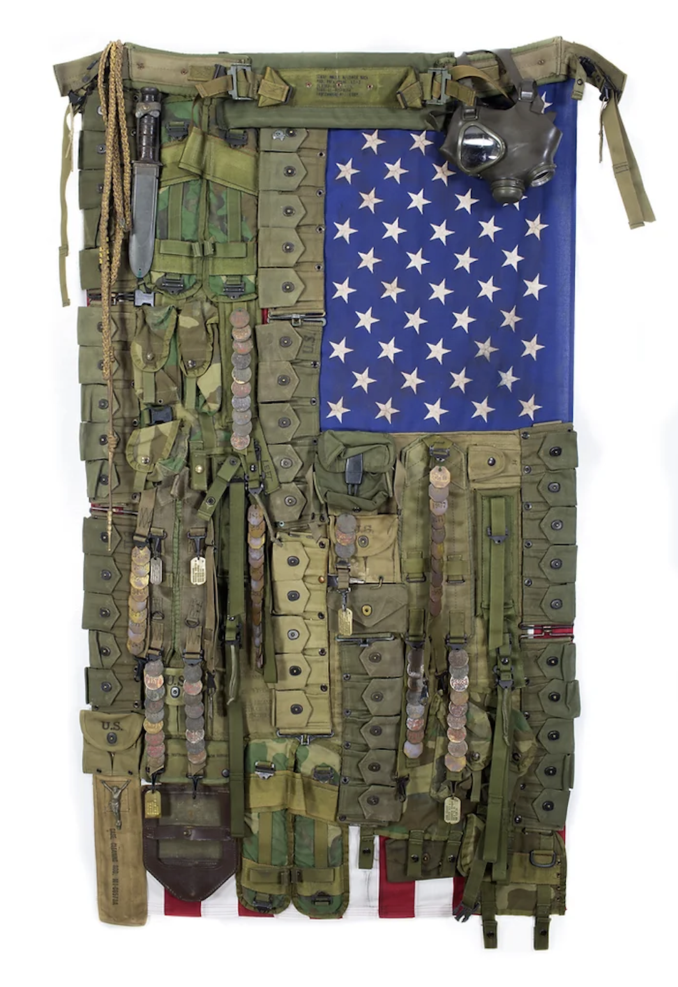 I would go to Pennsylvania, Massachusetts, to fairs, to flea markets. Sometimes, the vets would be trying to get rid of their stuff because they didn't want the memories. Some were sourced online, if I was looking for something very specific; like coal miner tags or a military backpack, but they always needed to be used, second hand. Online is always tough. I only do it when I am absolutely desperate. I need to touch the materials, it's a visual thing that needs to happen, it's instinctual. Viewing things off of a cold computer screen is never my preference.