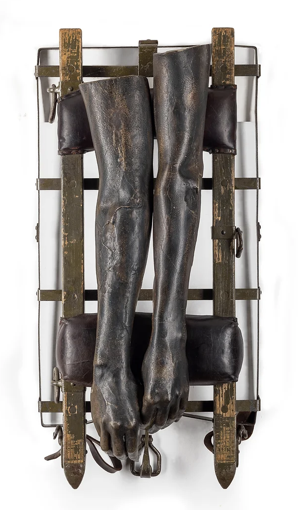 Making the stressful positions and gestures was very important. I felt like I needed that to be in the sculpture. It needed it to be more human. That's also how I felt with all the nationalism and war pieces, I needed to humanize it, I needed it to be specifically about pain and to feel that tension physically. They're still objects, but you can see the hands, it could be your hands. It’s scale is your scale.