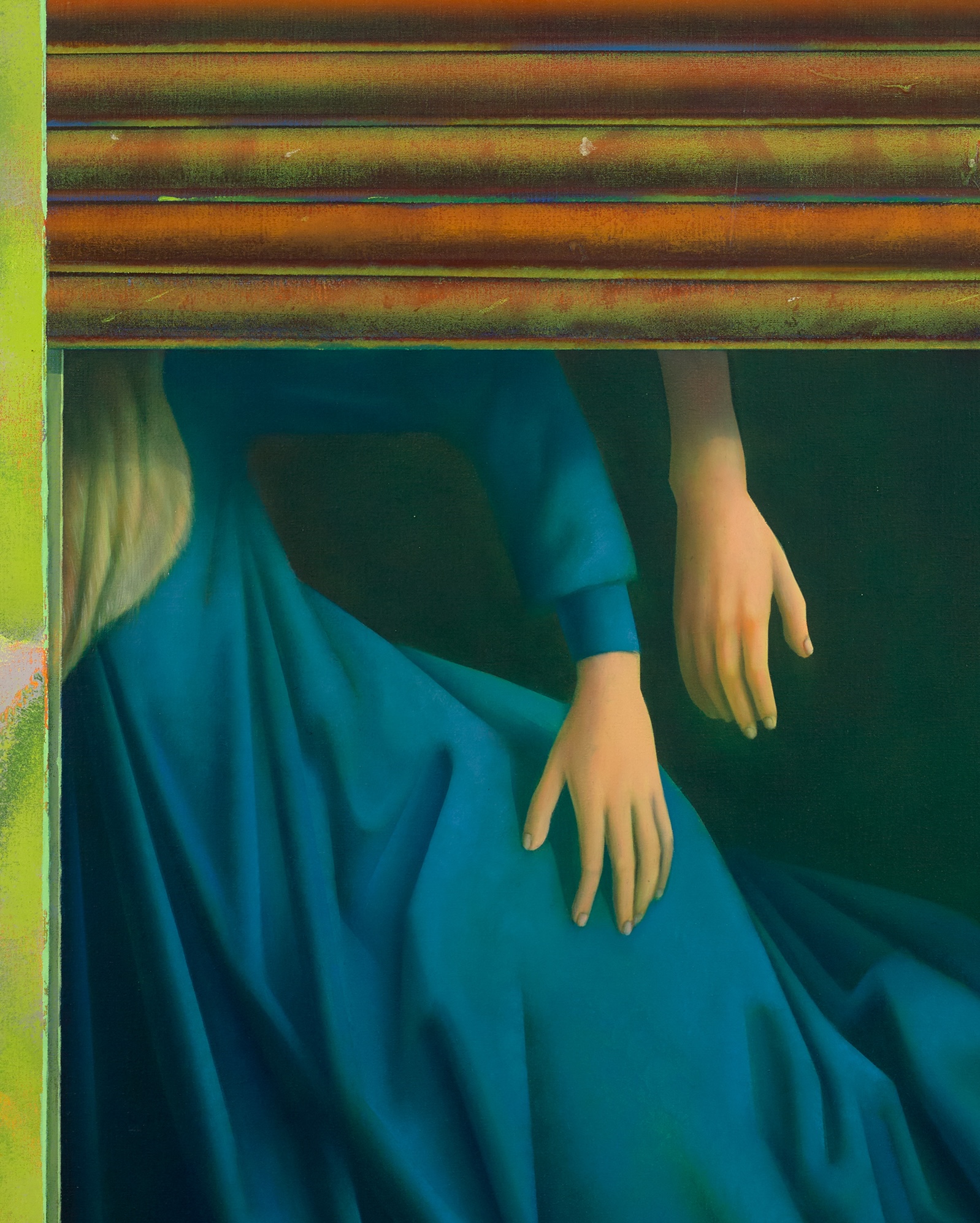 Generally, my ‘figures’ are actually just images, mannequins or sculptures within a painting. At most they’re an extended arm or peeping hand. I do this as I want to reduce them to their symbolic and formal functions, without a larger narrative being introduced.
